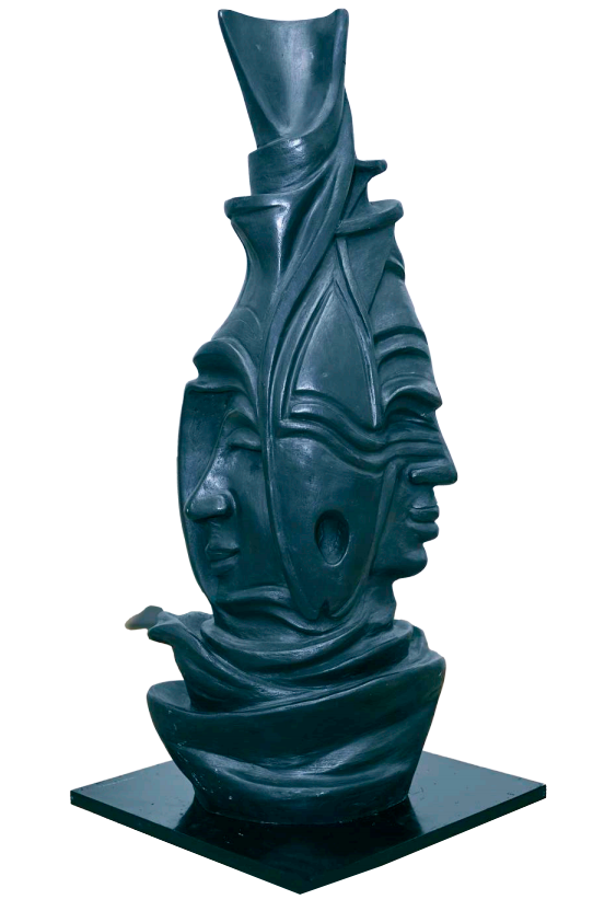 form. Crafted from premium fiber glass, it captures two faces merging in a