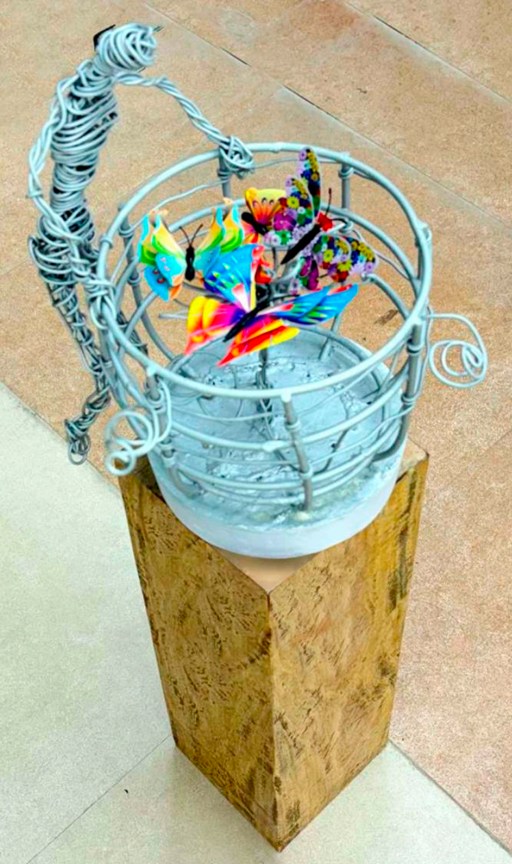 - Structure: Hand shaped wire frame basket with butterfly cluster