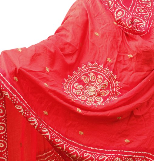 This classic gajji silk dupatta in white bandh is beautifully detailed with intricate khat aree work and embellished with exquisite handmade latkans, adding a touch of elegance to any outfit.